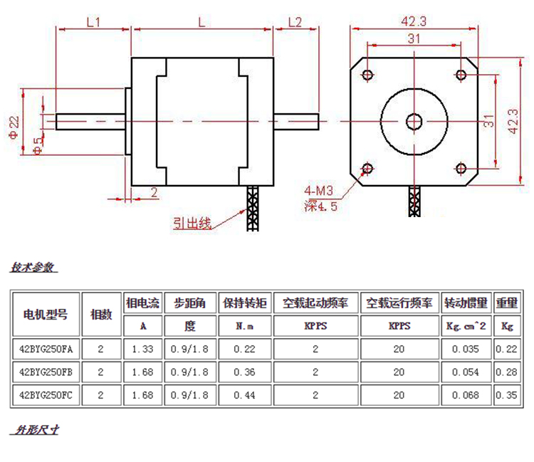YH-124-42BYG250F系列步進(jìn)電機(jī)(方形)
